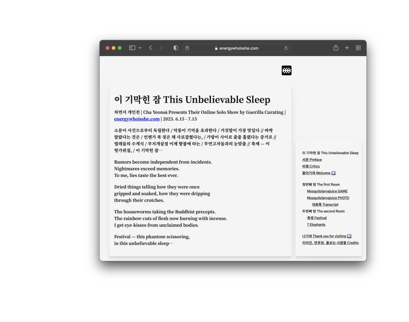 지난 전시: 차연서 온라인 개인전 《이 기막힌 잠》, 에너지후이쉬게임즈, 2023.6.15 ~ 7.15